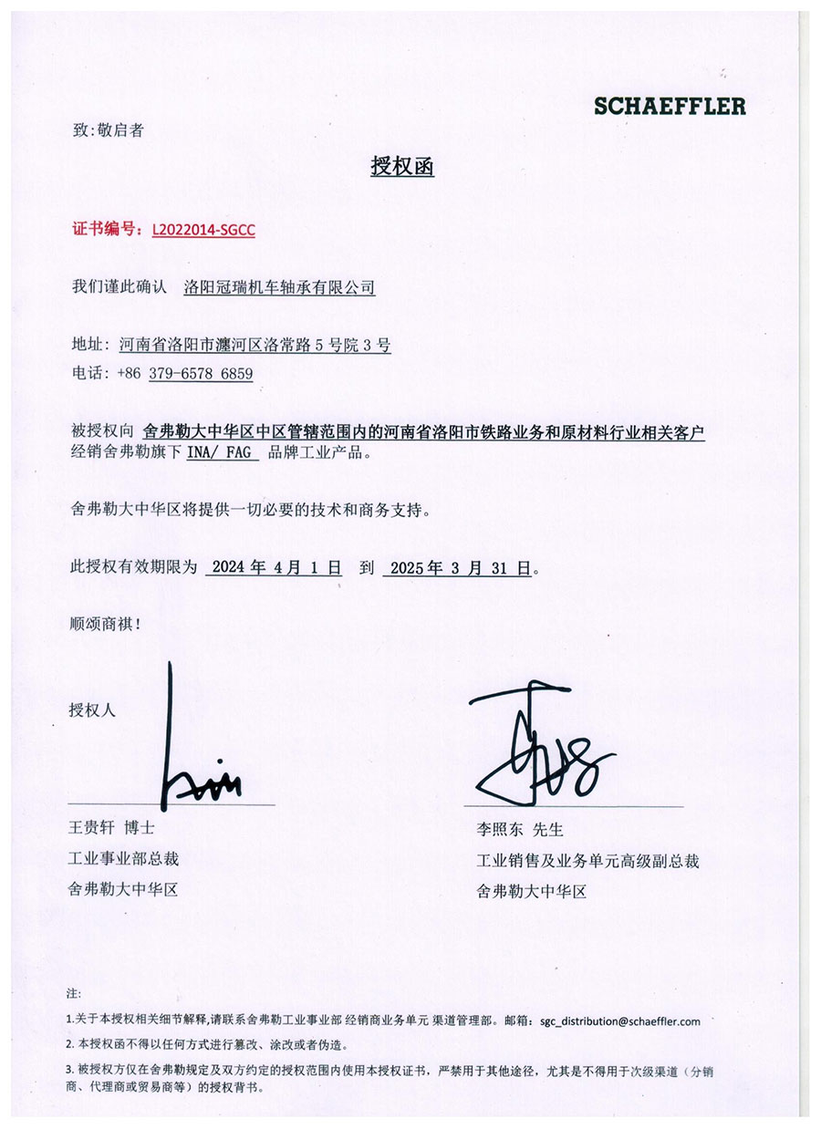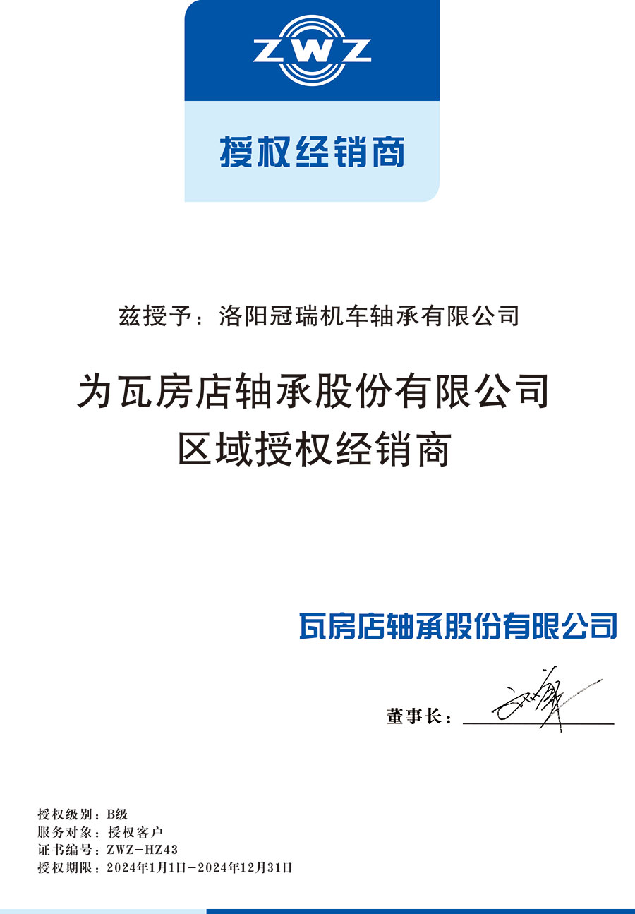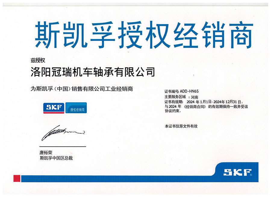 洛陽(yáng)冠瑞機(jī)車(chē)軸承有限公司是一家代理國(guó)內(nèi)外軸承知名品牌銷(xiāo)售公司。主要代理品牌德國(guó)FAG,瑞典SKF,日本NSK,瓦軸ZWZ,洛軸LYC,人本C&U,浙江天馬TMB,福建龍溪LS,洛陽(yáng)中得ZDU授權(quán)經(jīng)銷(xiāo)商。