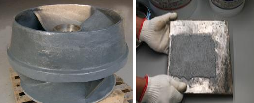 ( 1 )表面處理:在設備耐磨防腐修復之前,對于設備修復面要做表面處理工藝,在除油除潮后,以角磨機或噴砂方法將待修補表面處理成均勻的粗糙表面,以增強修補材料與修補表面的粘結力強度。